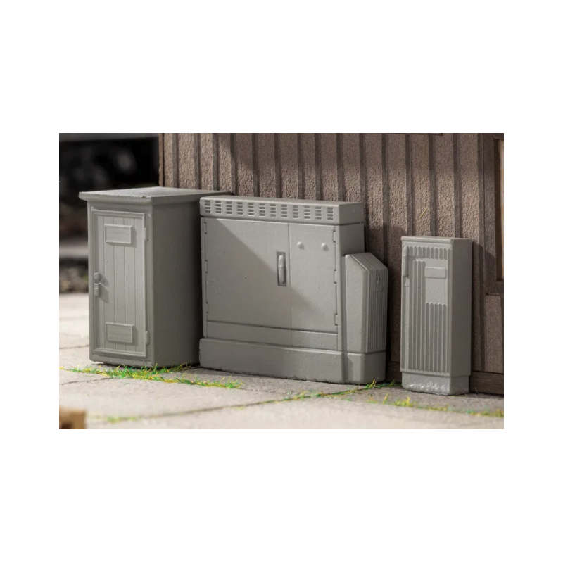 3D printed power and distribution boxes by Noch. Scale 1:87