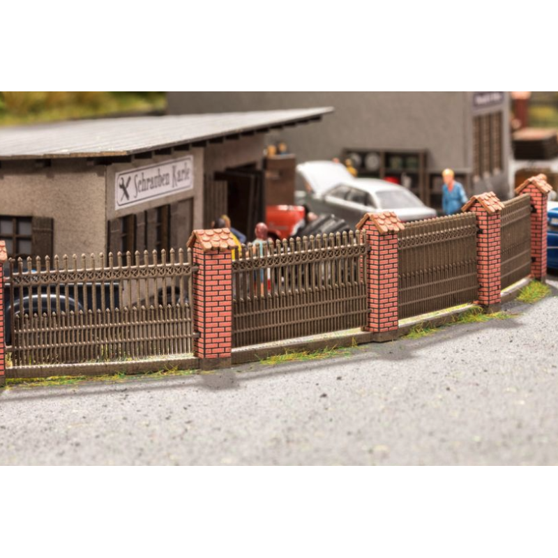 Laser-Cut minis Fence with brick columns - Noch 14235
