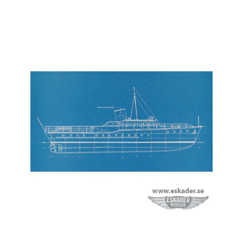 Svensk motoryacht - Skala 1:50 / 1:25 - Modellens största längd 52 cm / 104 cm - Största höjd 22 cm / 44 cm - Ritning - 1 / 3 blad Motoryachter av Storms typ användes mest som exklusiva fritidsbåtar. Många har överlevt till våra dagar och vårdas ömt som klenoder av hängivna båtentusiaster.