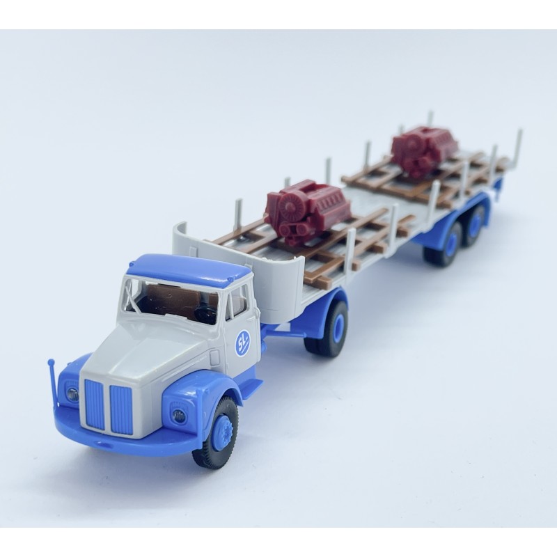 Scania L 110, Blå/grå lastbil lastad med 2 Deutzmotorer "SL Transport AB"