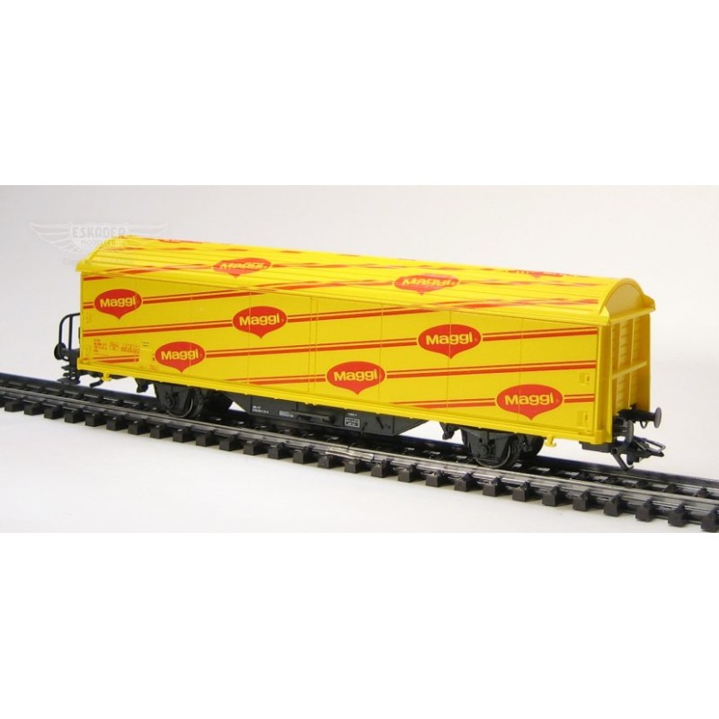 Gul schweizisk 2-axl skjutväggsvagn “Maggi” Hbis 299. SBB Godsvagn, , H0 (1:87)