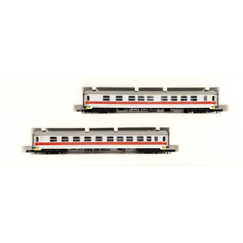 Svenska personvagnar, TÅGAB, från Freudenreich Feinwerktechnik i skala Z (1:220). 1:a samt 2:a klass. Fullt kompatibla med Märkllin Z. Begagnad sats med litet färgskav på ett tak och sprickor i kartongen.