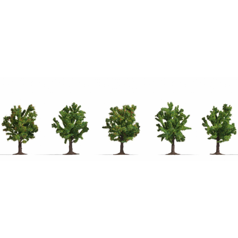 Fruktträd, 5 st, från Noch. Höjd: 8 cm. Skala 1:87
