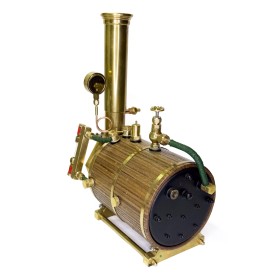 Ångpannas klädsel/isolering är utförd i fräst valnöt och mässing.